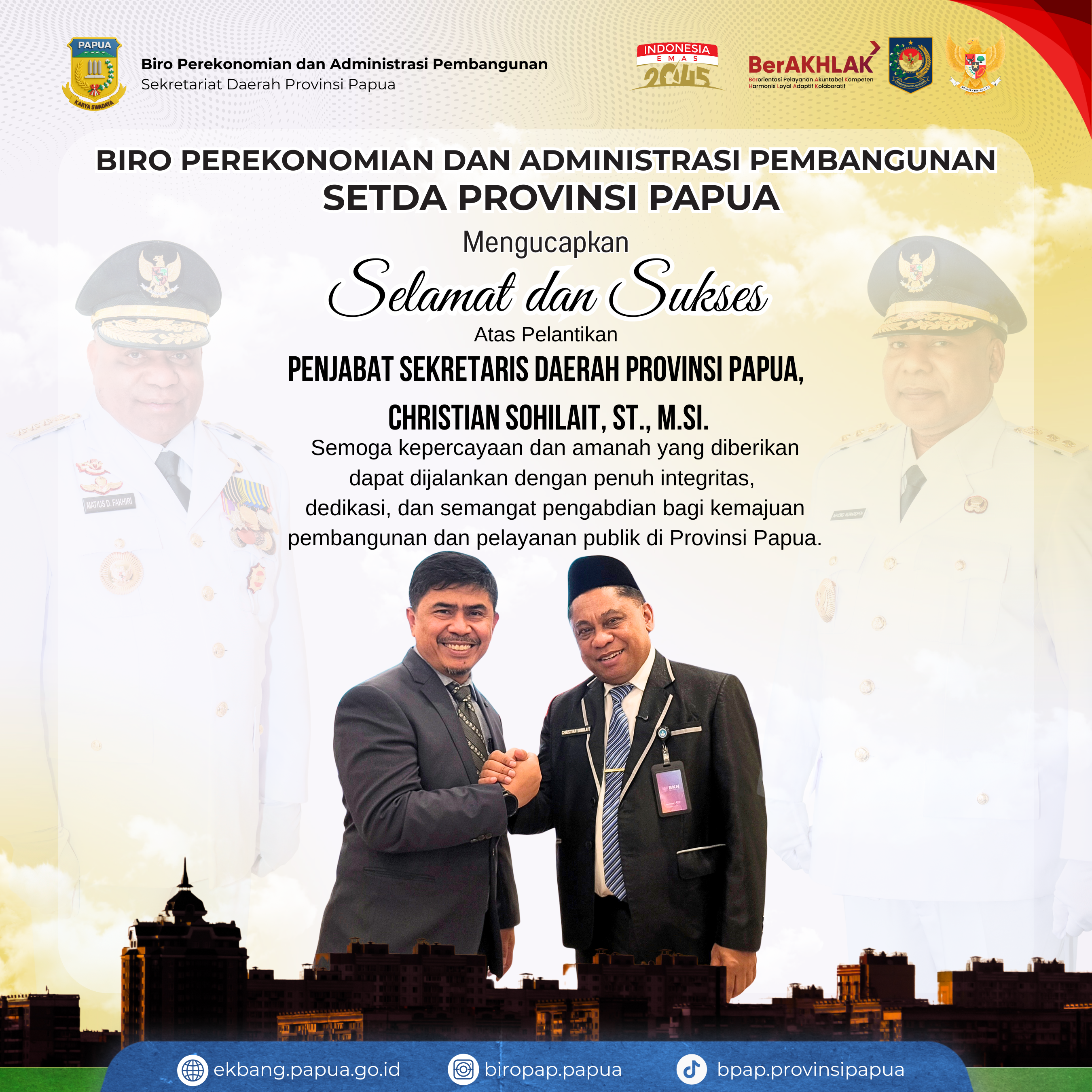 Biro Perekonomian dan Administrasi Pembangunan Setda Provinsi Papua menyampaikan selamat dan sukses atas pelantikan Penjabat Sekretaris Daerah Provinsi Papua,